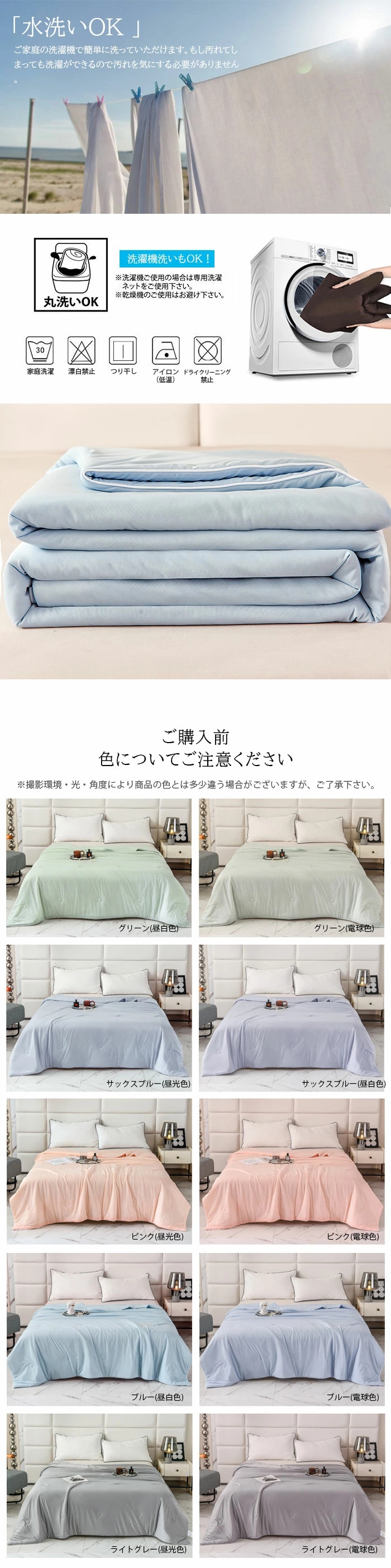洗濯機で洗えるので衛生的な布団、吸水速乾性にも優れ、汗をかいてもサラッと快適です。