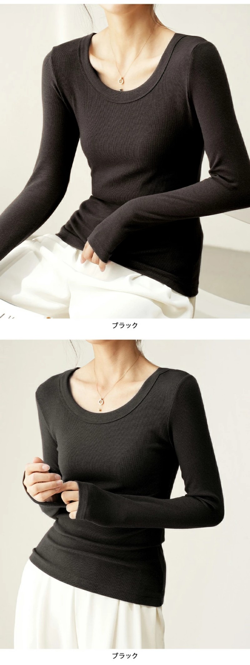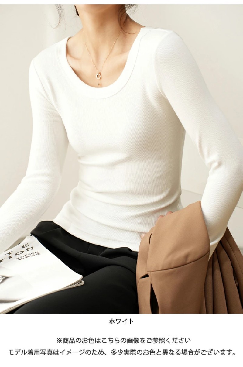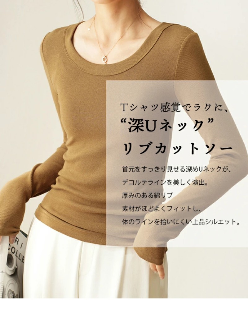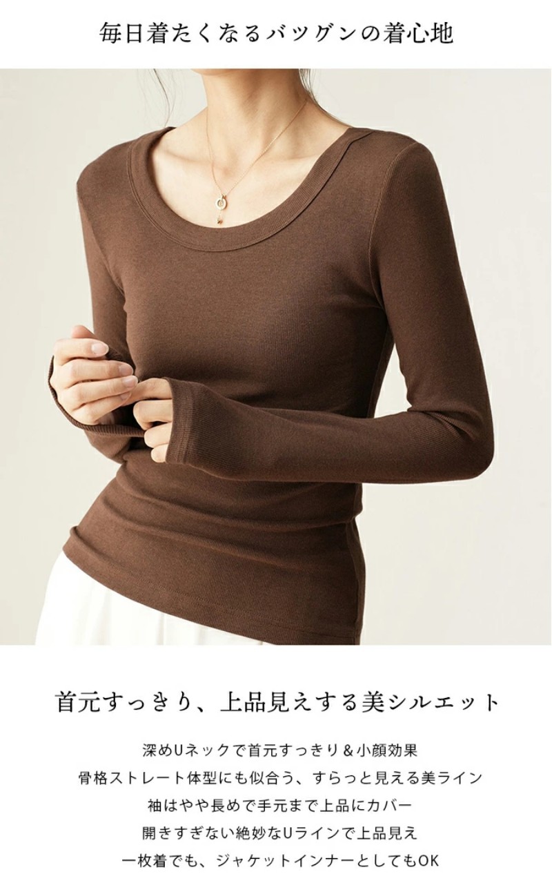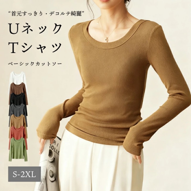 Tシャツ Uネック ブラウス リブ レディース シャツ 長袖 カットソー プルオーバー 綿 ルームウエア クールネック トップス 大きいサイズ インナー 肌着 重ね着