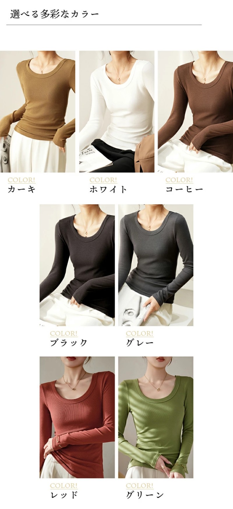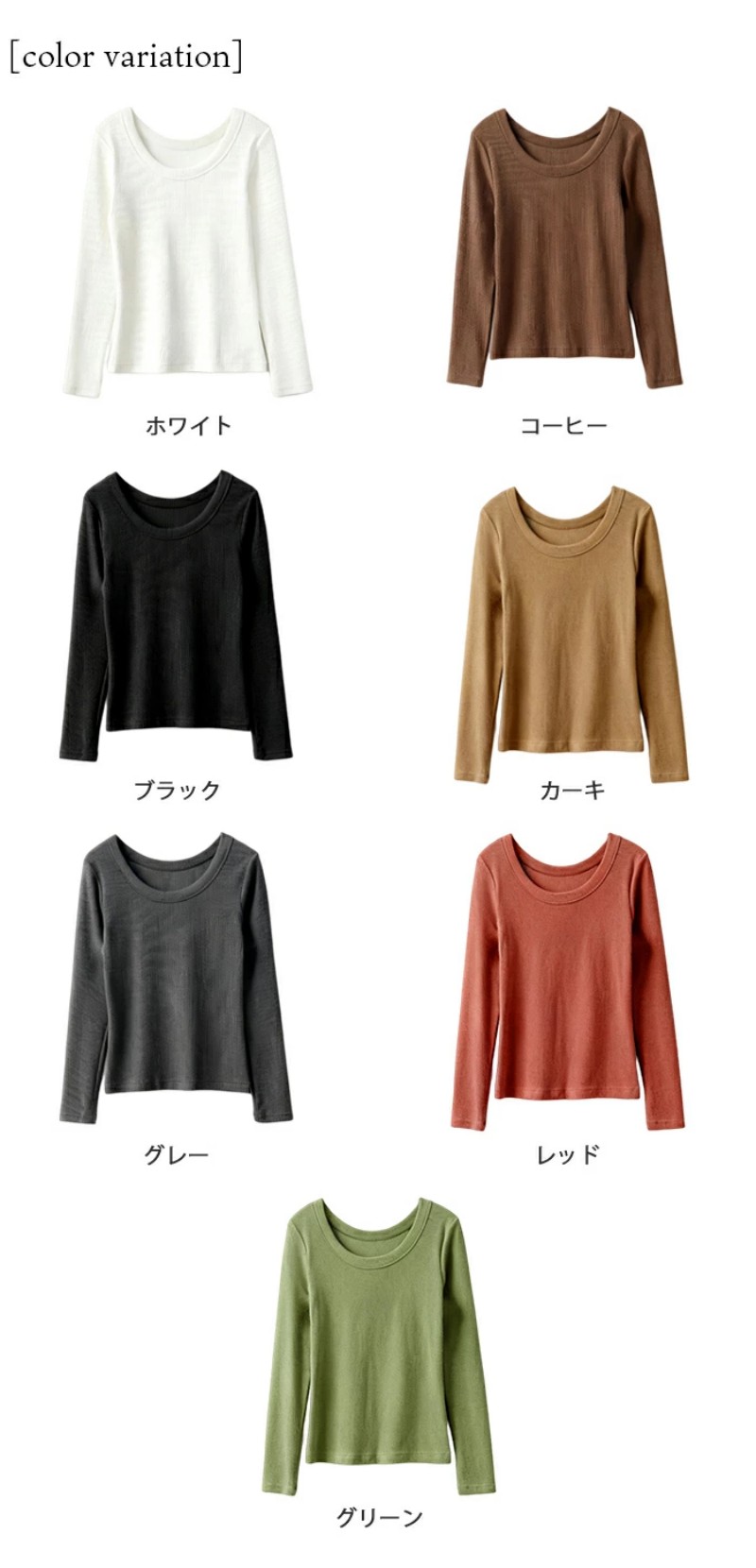 カラー展開 【カーキ】【レッド】【グレー】【ブラック】【ホワイト】【コーヒー】【グリーン】