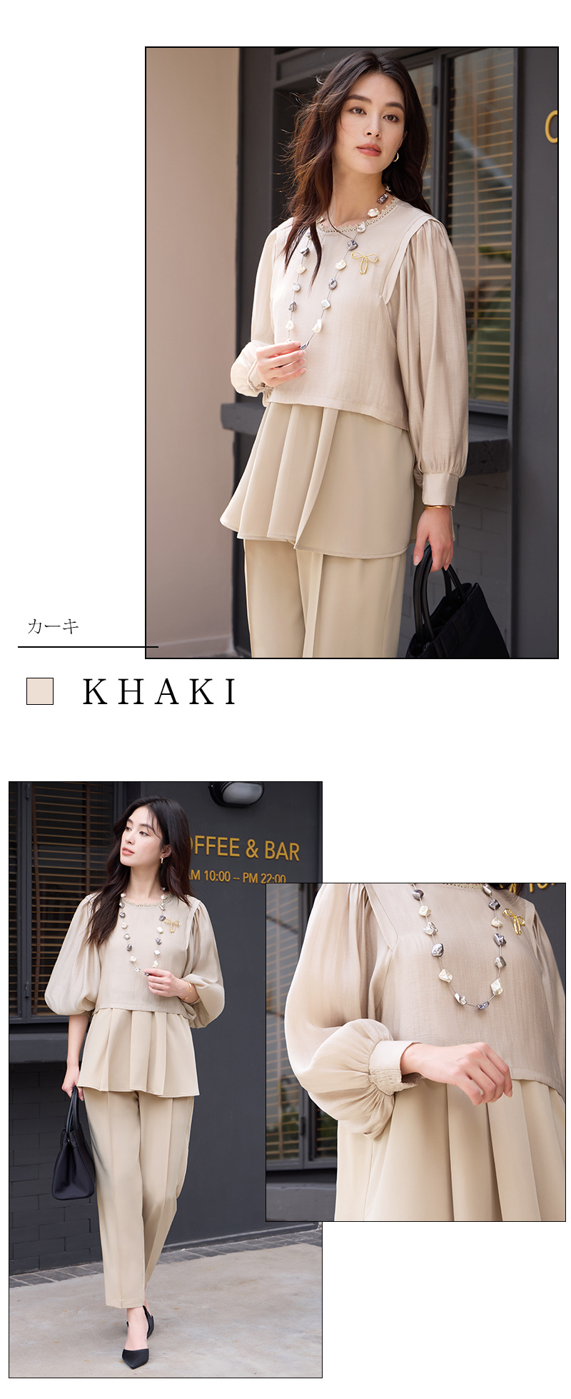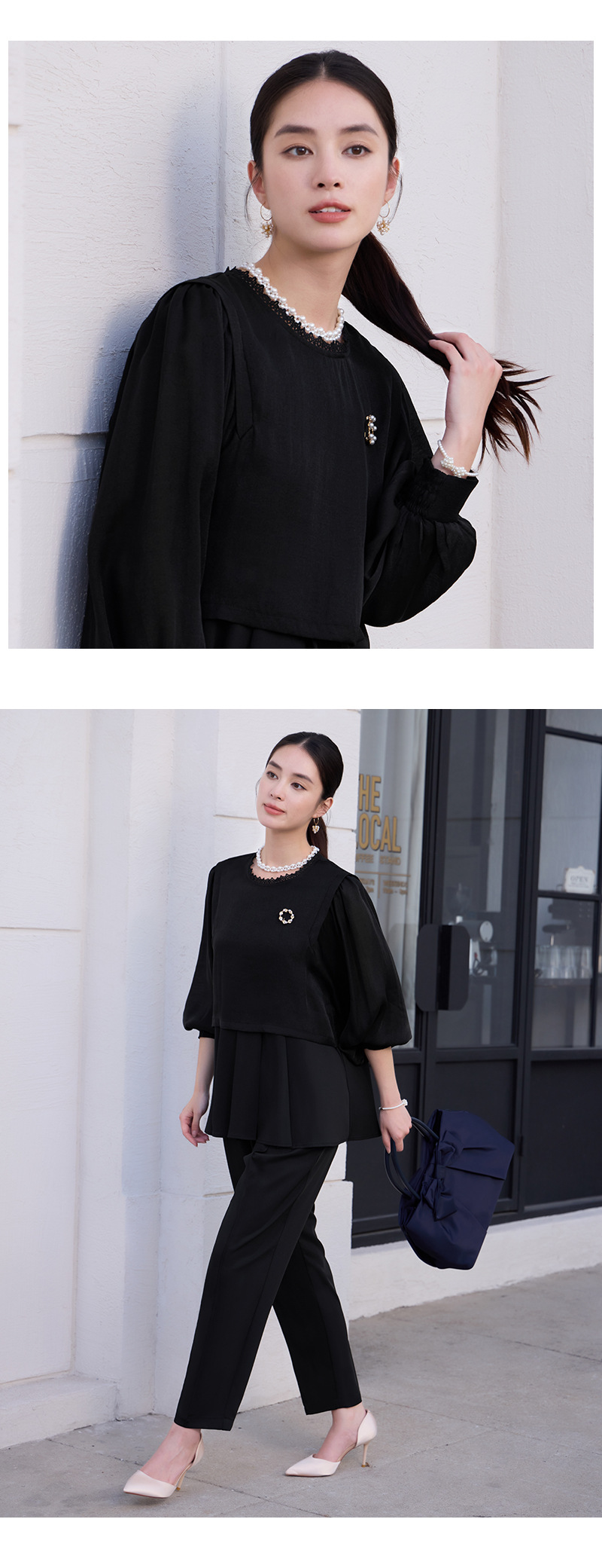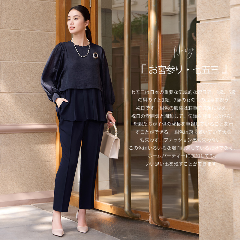 授業参観などの学校行事、発表会など、上品かつきちんと感が求められる場面に、定番のきれいめセレモニースタイルとして。