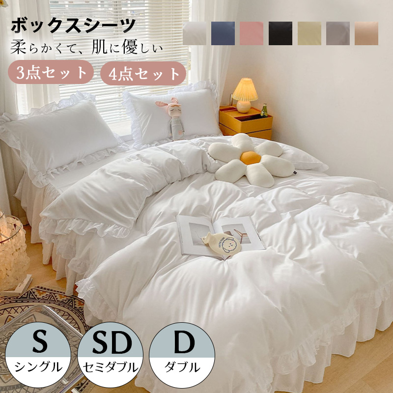 布団カバー 3点セット シングル セット セミダブル 4点セット 春用 寝具 洗濯 ふとんカバー フリル付き 可愛い 掛け布団カバーボックスシーツおしゃれ