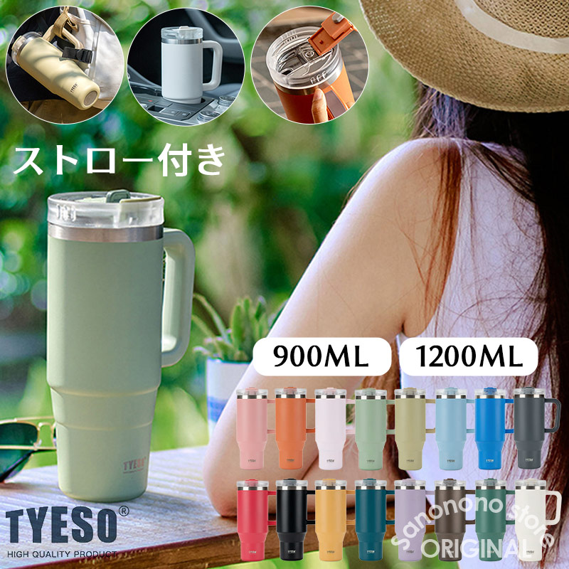 TYESO タンブラー ストロー付き 蓋付き 保温 保冷 大容量 ステンレス 二重構造 真空断熱 保温 保冷 おしゃれ 900ml 1200ml 結露しない コーヒータンブラー