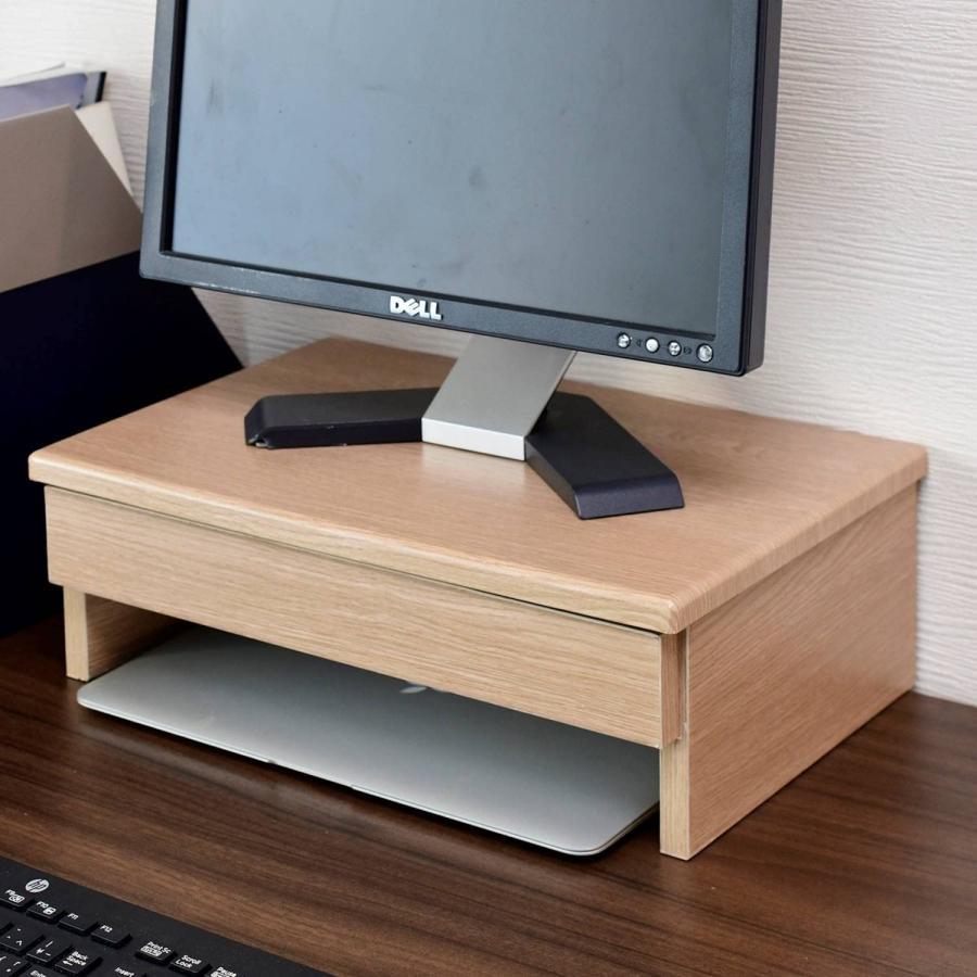 [山善] モニター台 引き出し (A4クリアファイル対応) パソコン台 ディスプレイ台 机上台 幅40×奥行26×高さ13.5cm 完成品 ナチュラ