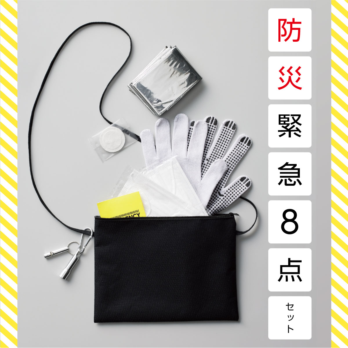 災害時に必要な防災グッズを肩掛けできるサコッシュに入れたセット!