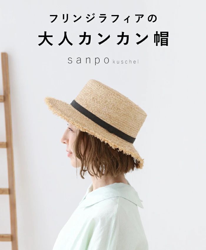 日除け 遮光 帽子【フリンジラフィアの大人カンカン帽】麦わら帽子日焼け対策 小顔効果 日よけ 通気性 軽い 紫外線対策 UVカット 夏 カンカン帽 帽子 リゾート レディース カジュアル かわいい どこにもない ゆったり 30代 40代 50代 60代 sanpo【b13859od】