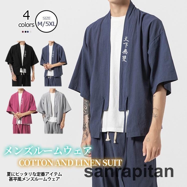 甚平 ルームウェア メンズ 半袖 無地 オーバーサイズ 黒 カジュアル 夏 薄手 シンプル ボトムス 安い イベント 上下 セット 長ズボン 高級 大きいサイズ 部屋着