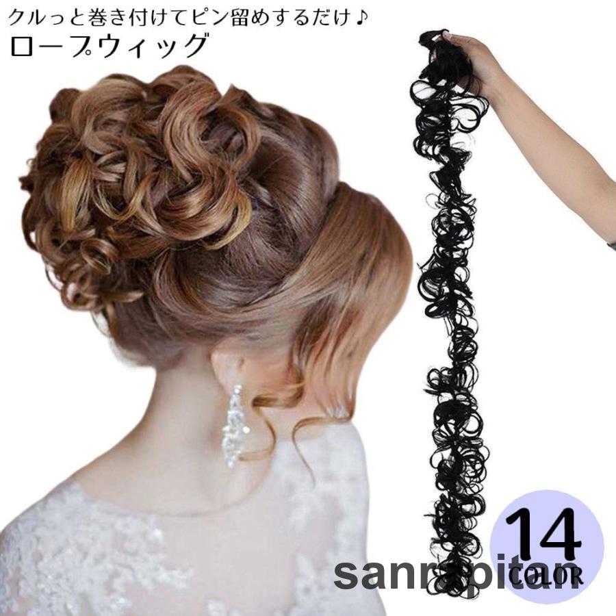 ロープウィッグ ポイントウィッグ レディース 部分ウィッグ エクステ つけ毛 髪飾り 巻き付け カール 耐熱 お団子 七五三