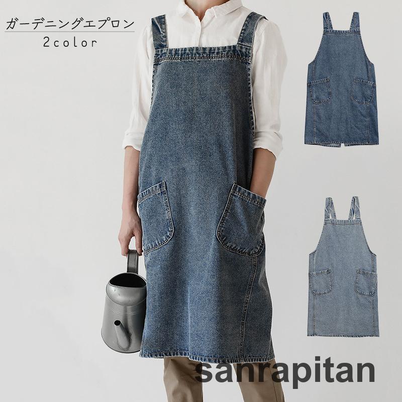 ガーデニングエプロン エプロン レディース メンズ デニムエプロン デニム生地 ジーンズ生地 丈夫 ガーデニング用品 ポケット ロング丈 園芸 庭いじ