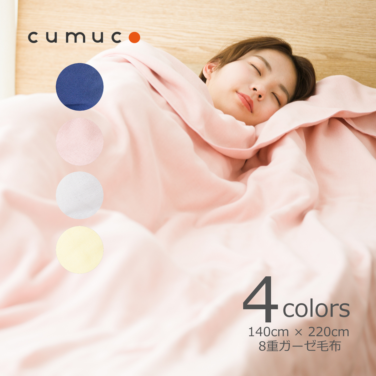 クムコ cumuco 8重ガーゼ 毛布 シングル 140cm×220cm あいいろ さくら はいいろ れもん 保湿 防寒 天然素材 暖め 男女兼用 綿 ふかふか 優しい手触り