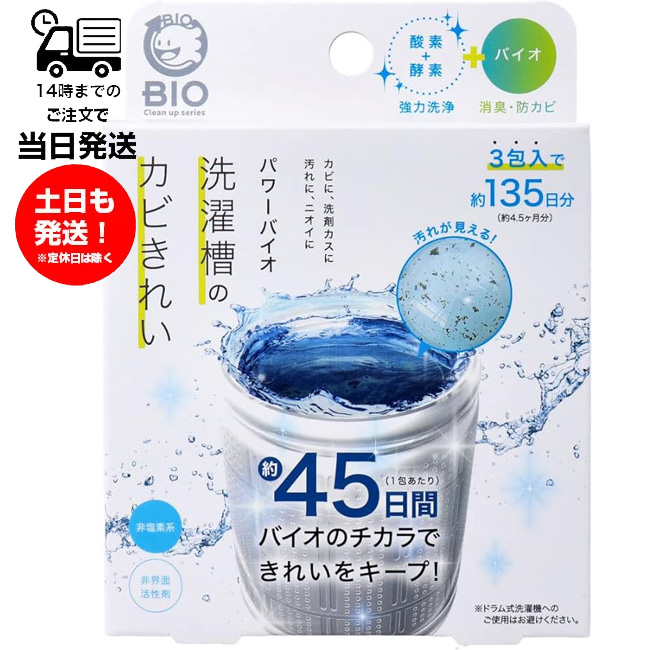 パワーバイオ 洗濯層のカビきれい 3包入り 非塩素系 非界面活性剤 洗濯槽 掃除 酸素 酵素 強力洗浄 臭い 防カビ 消臭 洗濯機 POWER BIO