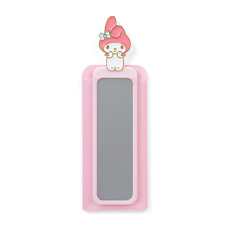 おでかけの時にあるとうれしいプラスワン小物☆マイメロディがちょこんとミラーに乗っているようでかわいい★ポーチはもちろん胸ポケットにも入れやすいスリムサイズ♪