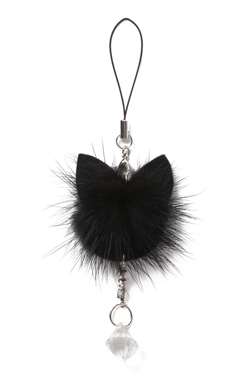 黒のミンクファーが気持ち良い黒猫ストラップ。