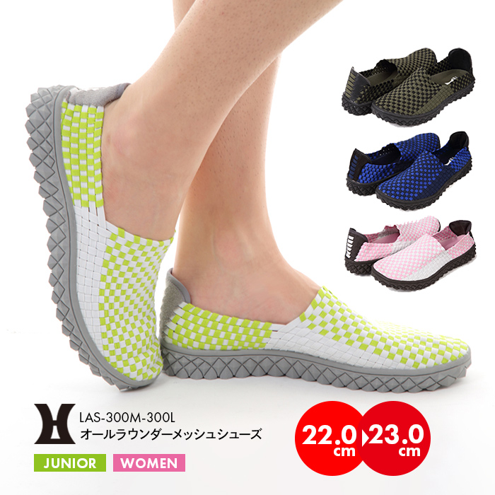 伸縮性と通気性が両立したカラフルシューズの登場です。 ラバーレースを編み込んだアッパーでフィット感がとにかく抜群。肌触りの良いクッションインソールと弾力性に富んだアウトソールが衝撃を程よく吸収。通気性・水はけも良く、素足でもストレス無く着用いただけます。仕事でも休日でも、またインドアでもアウトドアでもこなす「オールラウンダー」の名にふさわしいシューズです。