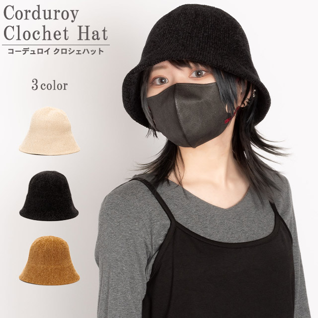 秋冬の定番、コーデュロイ素材を使用したクロシェハット。