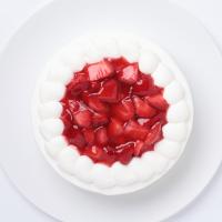 食べやすい大きさにカットしたイチゴにさらに手作りの苺ピューレで作ったジュレを加えてデコレーションしていますのでいちごの風味をより華やかに感じていただけると思います。