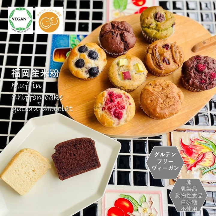 グルテンフリー ノングルテン ヴィーガン 米粉 マフィン シフォンケーキ ガトーショコラ 各1個セット 福岡産米粉100% 小麦粉・卵・乳製品・動物性食品を一切使用せず焼き上げた普通に美味しい!グルテンフリー・ヴィーガンスイーツです