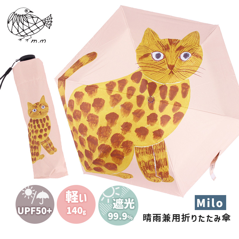 軽量+遮光+晴雨兼用 おりたたみ傘 松尾ミユキ Milo ミロ ねこ