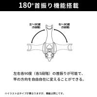 ●180°首振り機能搭載。左右各90度(各5段階)の首振りが可能で、竿の方向を自由自在に変えられる。
