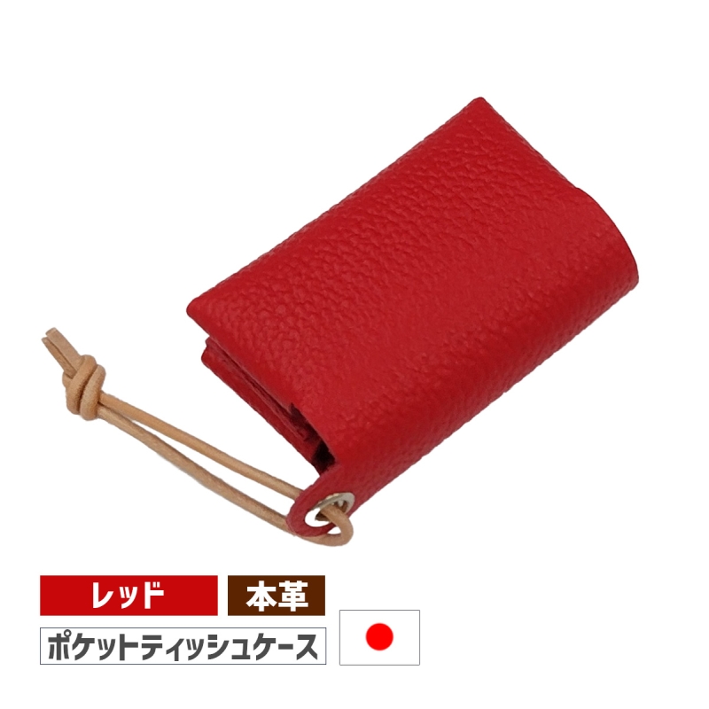 ポケットティッシュケース カバー ティッシュポーチ レッド/金具シルバー 本革 日本製 DG-16 手作り