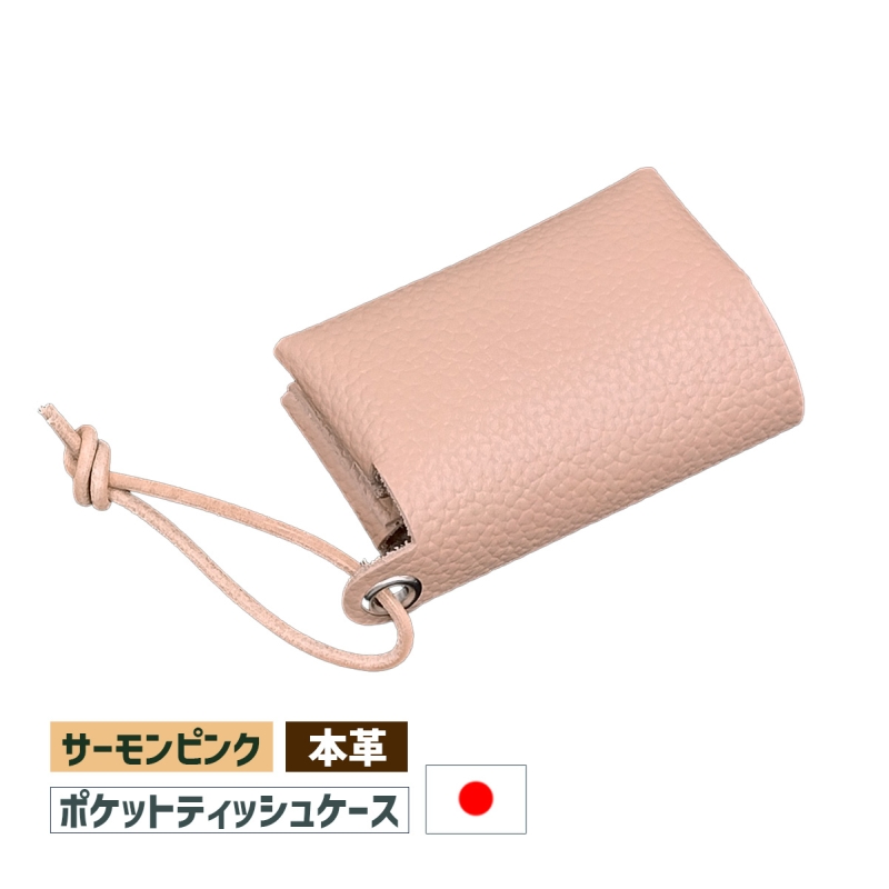 ケットティッシュケース カバー ティッシュポーチ サーモンピンク/金具シルバー 本革 日本製 DG-16 手作り