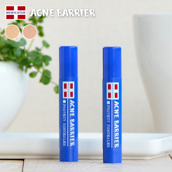 メンズアクネバリア「薬用コンシーラー」は、男子の肌に合わせた自然な肌色で、ニキビあとを素早くカバーして清潔感もUP。さらに、2種類の薬用有効成分がはたらき、くりかえすニキビサイクルをストップさせます。