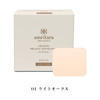 すーっと軽やかなつけ心地 大地と植物の力で輝く美しいお肌へ。 アムリターラ アメージングオーガニックファンデーション パウダリー 【レフィル 11g+専用コンパクトケース(パフ付き)】セット 透明感*と保湿力、カバー力を実現した、お肌に嬉しいオーガニックファンデーション。つけ心地から優しさ、成分まで、まさにアメージング。オーガニックのホホバオイル(保湿成分)やアロエベラエキス(天然植物保湿剤)がお肌の乾燥を防ぎ、サンゴパウダーが余分な皮脂を吸収。軽いつけ心地で薄づきなのに、お肌を美しく見せてくれます。ノンシリコーンだから、メイクオフは石鹸でオフできるのでとっても簡単。お肌への負担も少ないので満足して使えます。また、ナノ粒子不使用でもUVカットを実現し、さらに天然鉱石をナチュラル素材でコーティングしているから夕方になっても変色やくすみにくいのも特徴。お肌に嬉しいファンデーション、ぜひ一度使ってみてください。 ※別売りのシルキーフェイスブラシをお使いいただくと、より綺麗に自然な仕上がりになります。 *メーキャップ効果による |