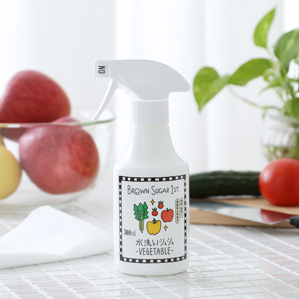 BROWN SUGAR 1ST(ブラウンシュガーファースト) 水洗いシュシュ ベジタブル  野菜や果物も・お肉・お魚にシュッ! 今日のごはんに使う野菜や、皮ごと食べるフルーツ。 「このまま水で洗うだけで大丈夫かな?」と、不安になることはありませんか?