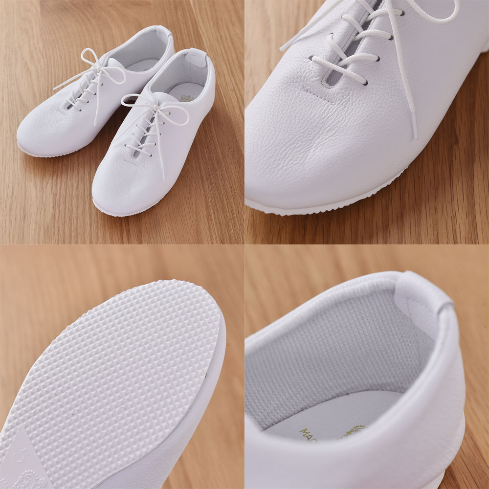 CROWNのジャズシューズは、上質で柔らかなシボ加工(シワ模様)をほどこしたレザーを使用。 軽い履き心地で、足全体を包みこむようなフィット感があります。