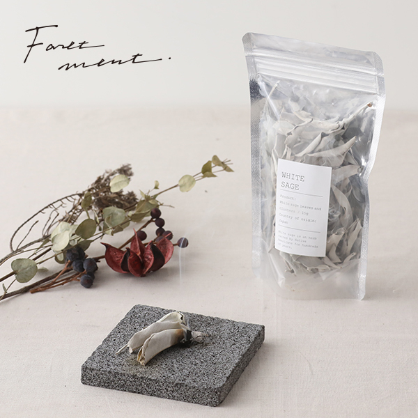 ![]() 天然ハーブの一種である「ホワイトセージ」。栽培が難しいとされる国産のホワイトセージを使用しています。ハーブらしいスッと爽やかな香りが特徴です。 |