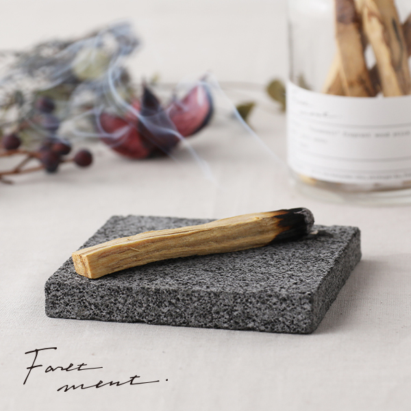 ※画像はイメージです。お香は別売りです。 お部屋にもよくなじむ 天然溶岩石のお香の受け皿 天然溶岩石を加工したトレー。 溶岩石には空気のリセット、遠赤外線効果があると言われ、熱にも強い特徴があります。
