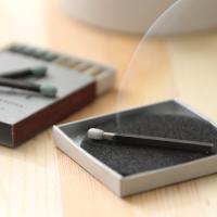 1. 箱の茶色い側薬に対し45度の角度で押し当て、斜め下に向かって擦ります。※端を持つと折れやすいので、軸の中ほどをお持ち下さい。 2. 着火したら頭を水平よりやや下にして持ち、お香に火が燃え移って自然に消えるまでお待ちください。 3. 専用マットに寝かせて置き、約10分間の香りをお楽しみください。使用後は専用マットごと持ち上げ、残った灰を捨ててください。→ 専用マット付はこちら |