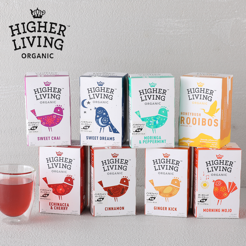 HIGHER LIVING(ハイアリヴィング) 有機ハーブティー 15TB  英国の紅茶のスペシャリストがお届けする 天然香料を使用した有機ハーブティー イングランド南東部に位置する歴史的な州、サセックスに生まれたティーブランドです。広く海に面した自然豊かな田舎町で、家族経営により、20年以上に渡り上質なお茶のブレンドを作ってきました。 その高品質でバラエティ豊かなブレンドのハーブティーは、今や世界55か国以上で多くの人々に愛されています。
