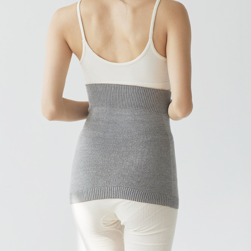 背中側を長めに設計し、ズレ落ちないように 前屈動作でズレ落ちやすい腹巻き。独自のライン設計で、背中側の丈を長く設計し、ズレ落ちにくい仕様にしました。お腹側もバスト下まですっぽりカバーし、やさしくお腹や腰まわりをあたためてくれます。
