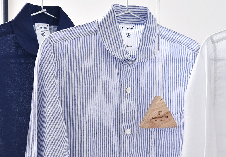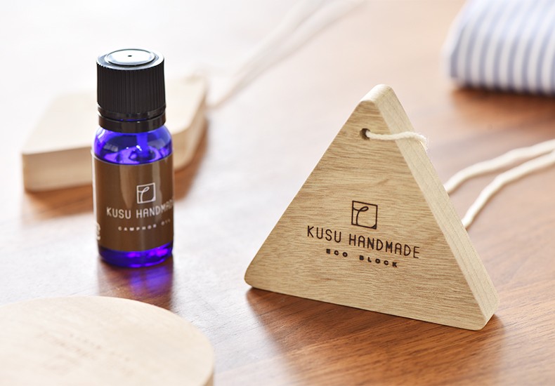 楠はその香りで防虫するので、香りが弱まればその効果も薄れます。ただよくある化学防虫剤と違うのは、繰り返し使えるという点。楠から取り出した純度100%のカンフルオイルを染み込ませることで、ずっと、何度でも使い続けることができます。楠(カンフル)の香りは揮発しやすく、においが衣服についてしまっても風にさらせばサッと消えるのが潔いところ。