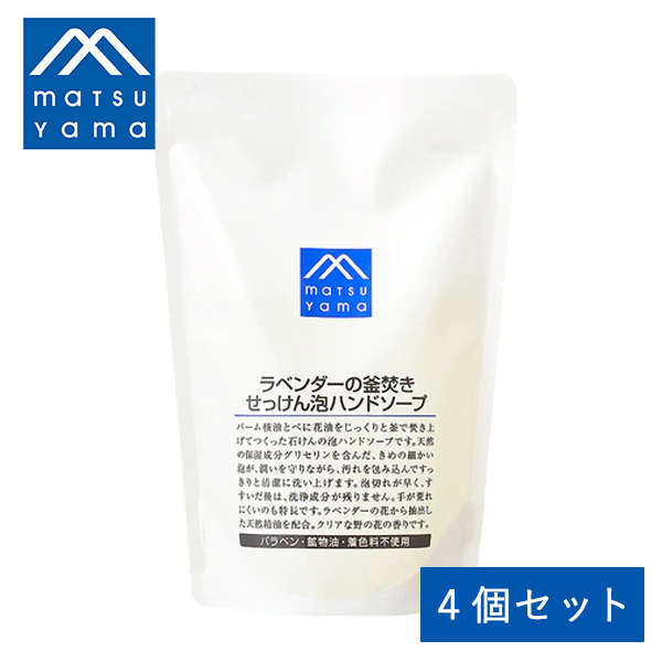 松山油脂 ラベンダーの釜焚きせっけん泡ハンドソープ (詰替用) 340ml【4個セット】 昔ながらの釜焚き製法でつくった石けんの泡ハンドソープ。泡切れが早く、すすいだ後は洗浄成分が肌に残りません。さらに天然保湿成分のグリセリンを配合。洗った後の手を優しく保湿します。 泡に包まれている時や洗い終わった後ほのかにフローラルで柔らかい香りが感じられます。天然のラベンダー精油を使用しているため保湿と香りが優しく手を包み込んでくれます。 〉〉本体360ml はこちら 〉〉詰替用(単品340ml) はこちら | |