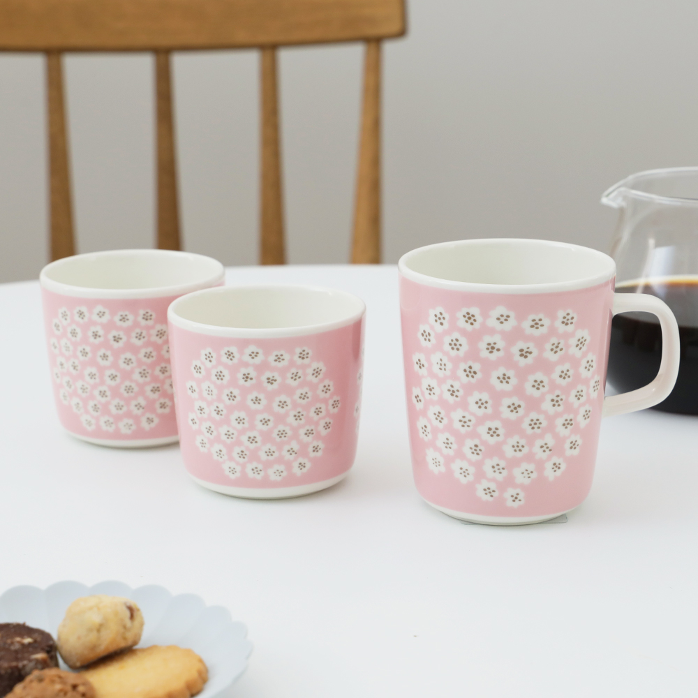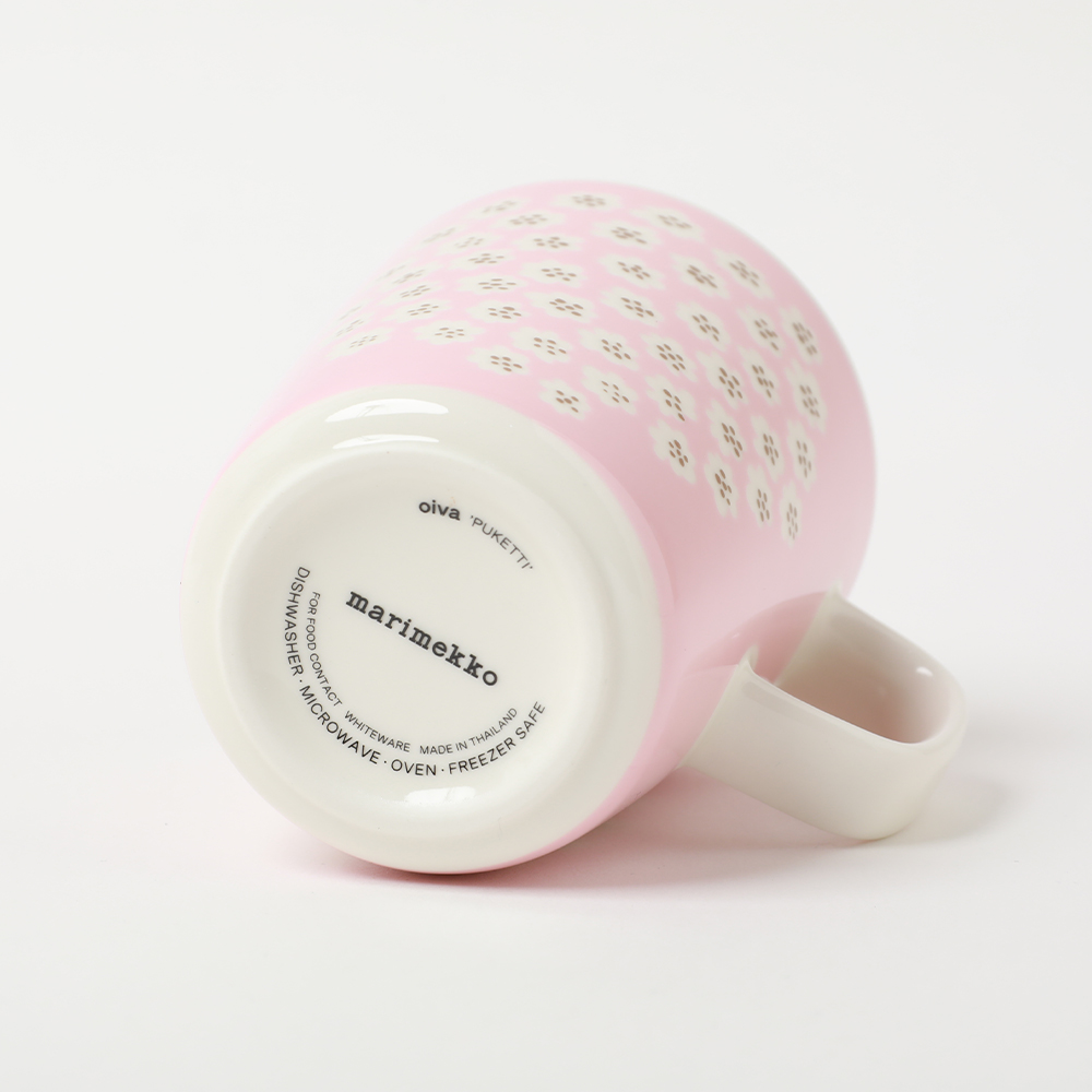 marimekko / マリメッコ PUKETTI (プケッティ) マグ 250mlカラー70(ピンク)  人気のプケッティ柄♪ 日本限定の春らしい華やかなマグカップ。 北欧フィンランドを代表するテキスタイルブランド「marimekko / マリメッコ」。 数多く展開するアイテムの中でもマリメッコらしい大胆で、ユニークな北欧デザインが気軽に楽しめるマグカップは人気のアイテムです。