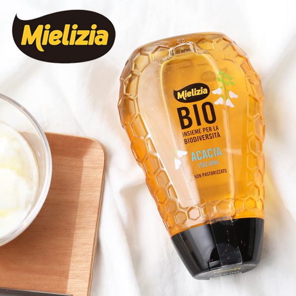 金色に輝き、口当たりのよい繊細な味わい。ヨーロッパで採蜜されたオーガニックハチミツ。 ミエリツィア アカシアの有機ハチミツ(スクイーザーボトル) 350g ヨーロッパで採蜜されたアカシアの風味豊かなオーガニックハチミツ。金色に輝く滑らかな質感で、やさしく繊細かつ上品な味わいが特長です。 採蜜地から集められたハチミツに、何も加えず全ての工程を最大でも40℃前後を越えないように低温で扱うことにより、本来持っている風味や香り、質感、そして栄養価を維持しています。 逆さまに立てて片手で簡単に絞り出せるスクイーザーボトルを採用しました。 手間と時間をかけ、蜜蜂と養蜜家が共同作業で作り上げた純粋なハチミツのおいしさを、イタリアから皆様の食卓にお届けします。 EUオーガニック認証取得 | ||||||||||||||||||||||