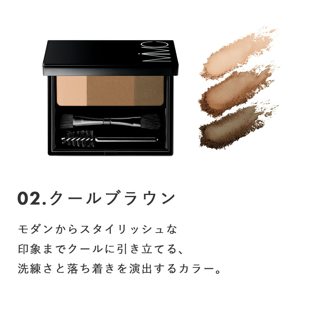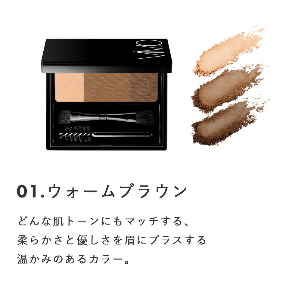 MiMC(エムアイエムシー) ミネラルグラデーションアイブロー  グラデーションカラーでプロ級の仕上がり。 次世代のパウダーアイブローパレット。 眉は顔の印象を決定づける「額縁」。その形や色合いによって、優しい雰囲気やスタイリッシュさ、意思の強さや柔らかさなど、印象は大きく変わります。 しかし理想的な眉を描くのは難しく、一色やペンシルで簡単に描きがちですが、顔は立体的であるため陰影や濃淡を意識することが大切です。