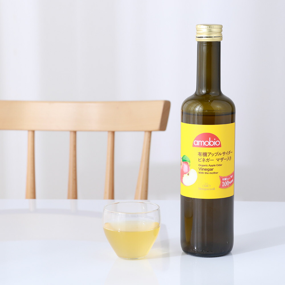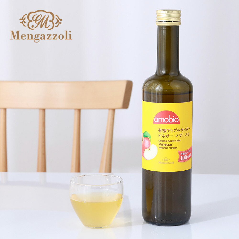 Mengazzoli(メンガツォーリ) アップルサイダービネガー マザー入り 500mL  フルーティーでマイルドな酸味が味わえる。 無濾過・非加熱にこだわった、飲むりんご酢。 皮付きの有機りんごを絞った果汁を醸造した、飲むりんご酢。 無濾過・非加熱で、体を健康に保つ栄養成分を多く含む「マザー(酢酸菌)」が含まれた"生にごり酢"です。