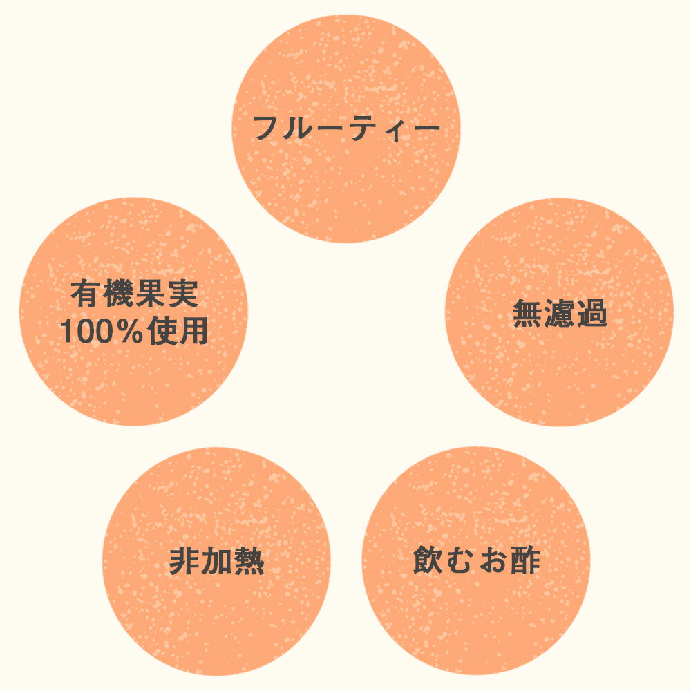 | こんな方におすすめ  ・健やかな毎日を過ごしたい ・さっぱりしたドリンクを探している ・毎日の健康習慣をつけたい ・お酢ドリンクを探している ・有機原材料で果汁100%のお酢を探している