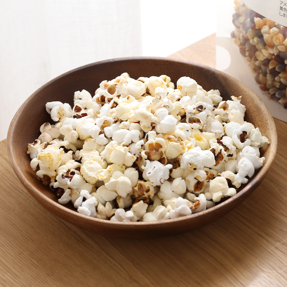 ポップコーンには、専用の「爆裂種」という種類のトウモロコシが使われています。爆裂種は粒の皮が非常に硬いのが特徴。加熱にすることで、粒の中の水分が水蒸気となり膨張し、皮が圧力に耐え切れず程よい具合に皮が破れてはじけ、ポップコーン状になります。