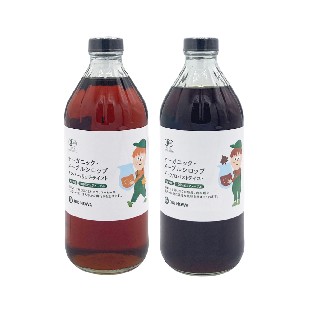 BIO NOWA(ビオノワ) オーガニック・メープルシロップ 475mL(627g) 【アンバー/リッチテイスト】【ダーク/ロバストテイスト】  カナダのサトウカエデの樹液のみで作られた。 100%ピュアな有機メープルシロップ。 カナダ産直輸入のメープルシロップ。 美しい琥珀色でマイルドな風味のアンバーと、芳醇な香りとコクがしっかり味わえるダークからお選びいただけます。