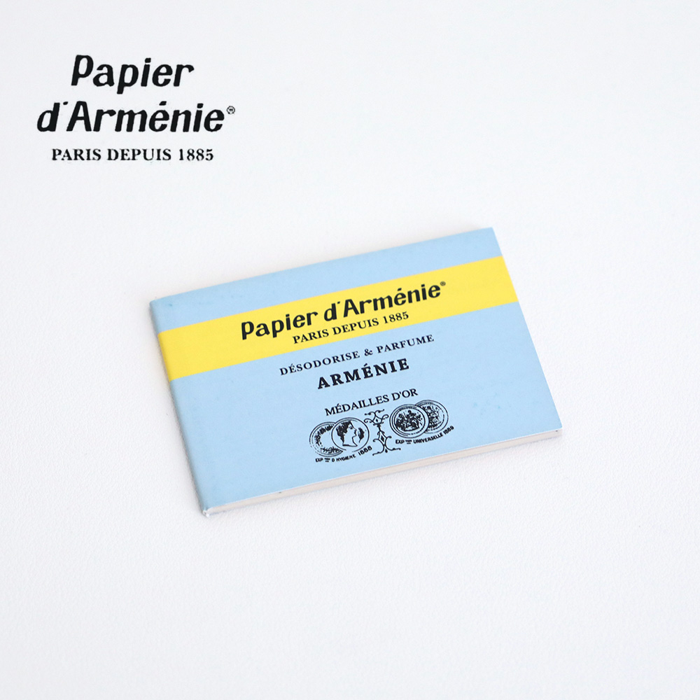 papier d'armenie(パピエダルメニイ) トリプル アニーデラルメニー/アルメニイ 1冊(36回分) 空気を浄化する紙のお香 パピエダルメニイは、空気をリセットしてくれる、フランスで120年の歴史のある紙のお香です。 こんな効果が期待できます。 締め切っていたお部屋の独特のにおいもスッキリ。タバコや揚げ物などのお部屋の匂いを中和して、気になるペットの臭いも消臭してくれます。 火をつけると成分が空気中に分散しウッディーバニラの芳しい香りが漂い空気をリセットしてくれます。 120年以上の歴史があり世界的に評価されています。 フランスでは1885年に登場して以来、歴史は約120年!12人の伝統的な職人さんの技によって作り出されるお香の1枚1枚には、手作りならではの“いびつさ”という味があり、時にクスリと微笑ましくなることも。 香りの向こうに作り手の温かな気配を感じながらお楽しみください。 | 使い方 ミシン状の切れ目に沿って1枚をアコーディオン状に折り曲げて不燃性の容器の上に置いてから火をつけます。線香のように火をつけて、吹き消してお使い下さい。 | LINEUP 紙のお香シリーズ