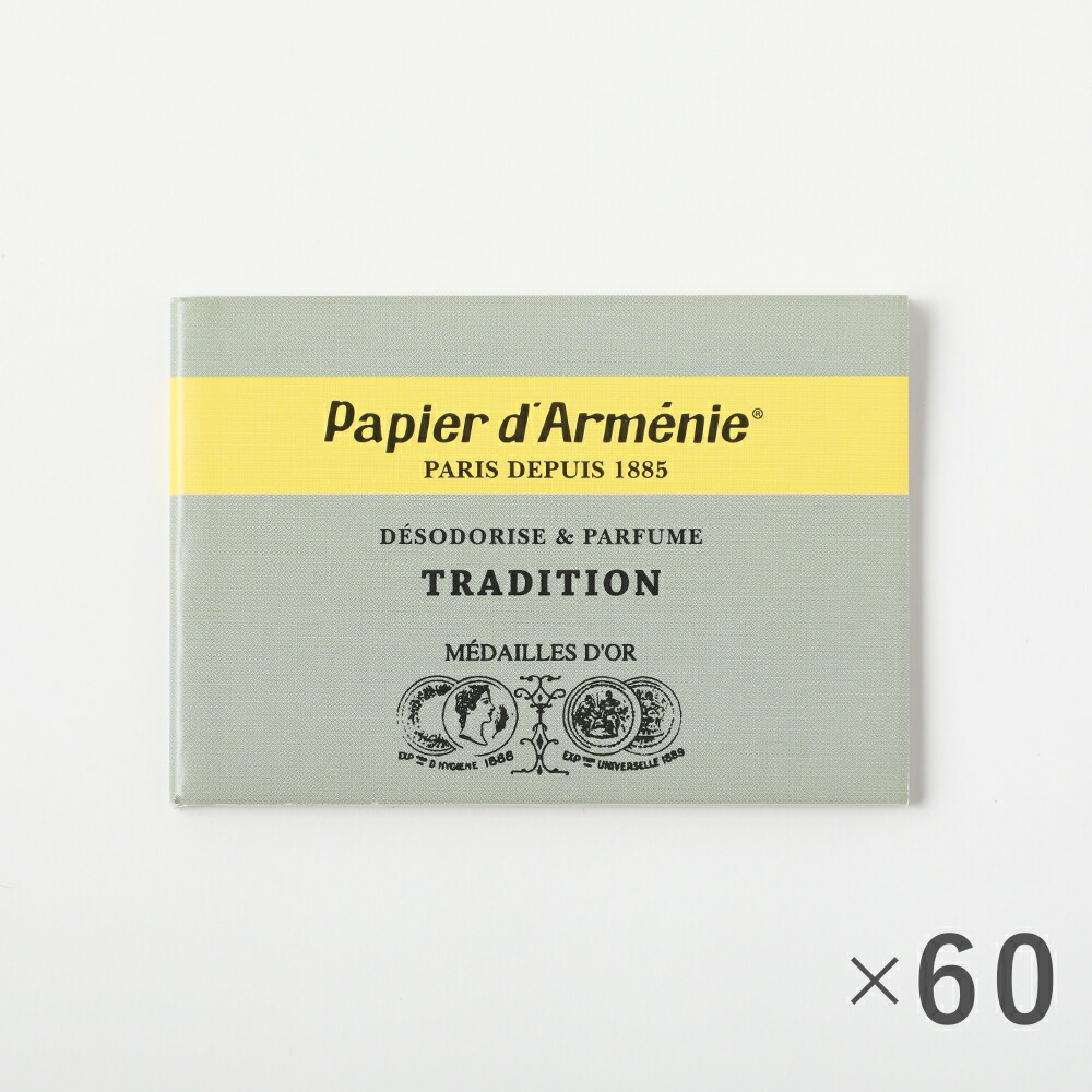 papier d'armenie(パピエダルメニイ) トリプル バニラ/トラディショナル 60冊(36回分×60) 空気を浄化する紙のお香 パピエダルメニイは、空気をリセットしてくれる、フランスで120年の歴史のある紙のお香です。 こんな効果が期待できます。 締め切っていたお部屋の独特のにおいもスッキリ。タバコや揚げ物などのお部屋の匂いを中和して、気になるペットの臭いも消臭してくれます。 火をつけると成分が空気中に分散し甘いバニラ風の香りが漂い空気をリセットしてくれます。 120年以上の歴史があり世界的に評価されています。 フランスでは1885年に登場して以来、歴史は約120年!12人の伝統的な職人さんの技によって作り出されるお香の1枚1枚には、手作りならではの“いびつさ”という味があり、時にクスリと微笑ましくなることも。 香りの向こうに作り手の温かな気配を感じながらお楽しみください。 | 使い方 ミシン状の切れ目に沿って1枚をアコーディオン状に折り曲げて不燃性の容器の上に置いてから火をつけます。線香のように火をつけて、吹き消してお使い下さい。 | LINEUP 紙のお香シリーズ