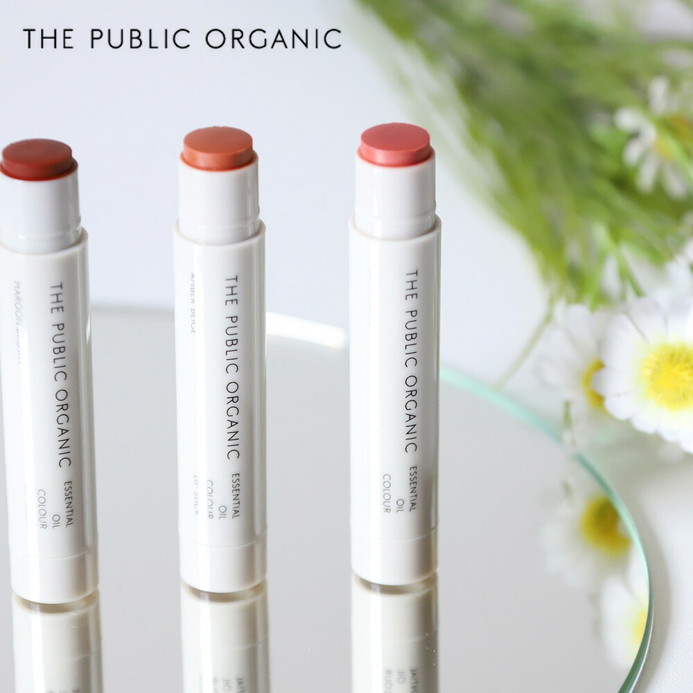 THE PUBLIC ORGANIC(ザ・パブリックオーガニック) 精油カラーリップスティック 3.5g ( ロージーコーラル / アンバーベージュ / マルーンブラウン )  唇にとろけるように、ぷるんっと馴染む。 ひと塗りで唇も心も美しく彩る、セミマットのリップ。 絶妙なセミマット感で品格と存在感のある唇へと仕上げるリップスティックです。 滑らかに溶け込み微細なミネラルカラー*1が高密着。濃密な植物オイル*2とこっくりとした植物ロウ*3が乾燥しがちな唇を守り、うるおいと美発色を叶えます。
