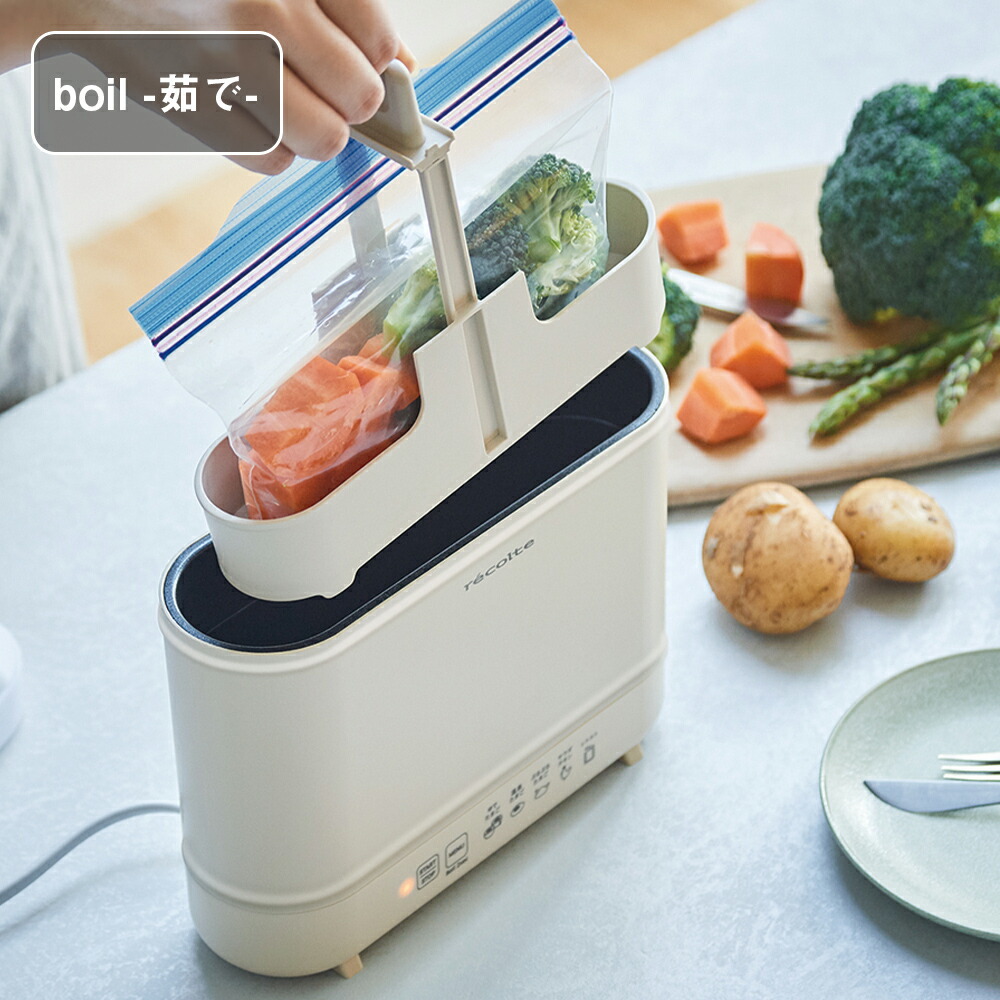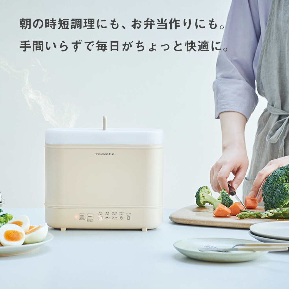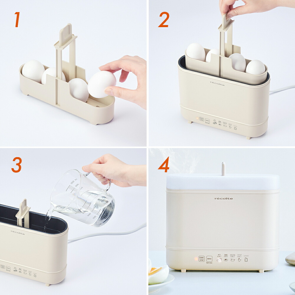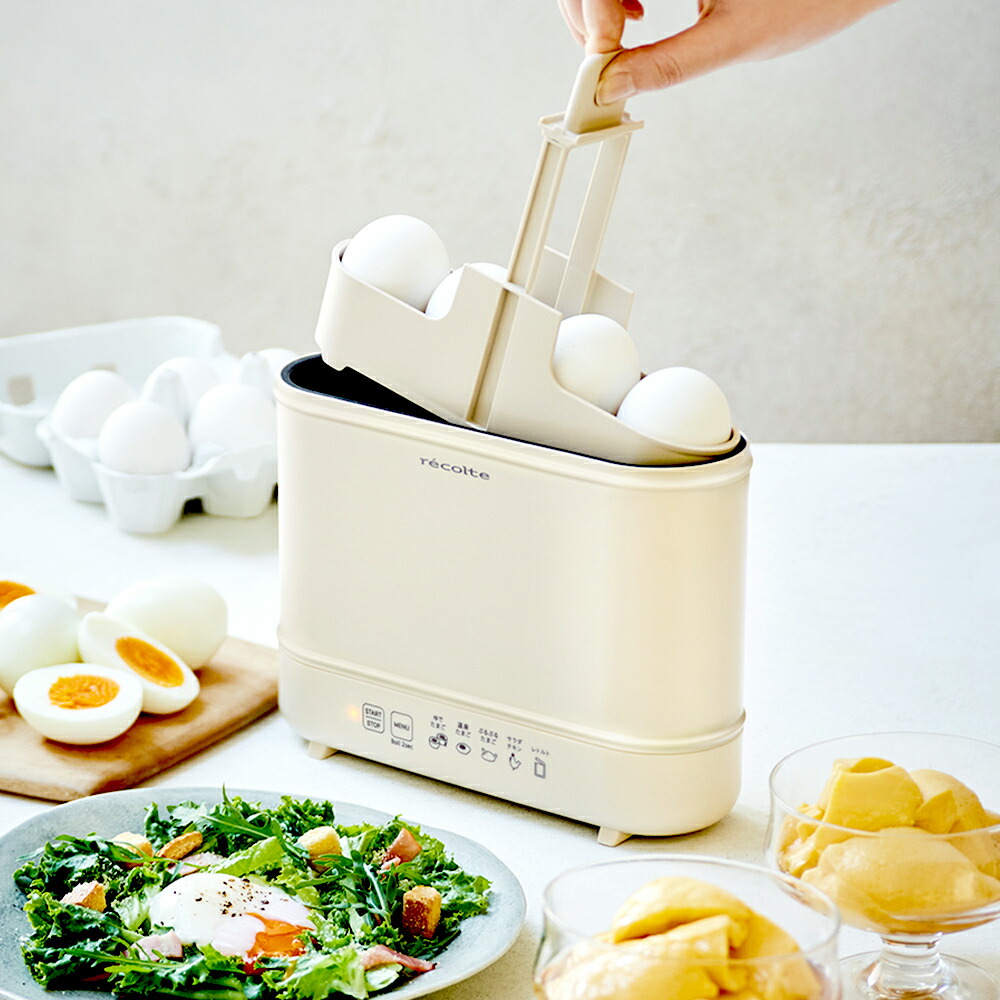 recolte (レコルト) エッグ&ボイルクッカー  ゆで卵も、レトルト湯せんも、サラダチキンも、ボタンを押すだけ。 ほったらかし調理で毎日快適♪ 朝の食卓にぴったりのエッグ&ボイルメーカー。