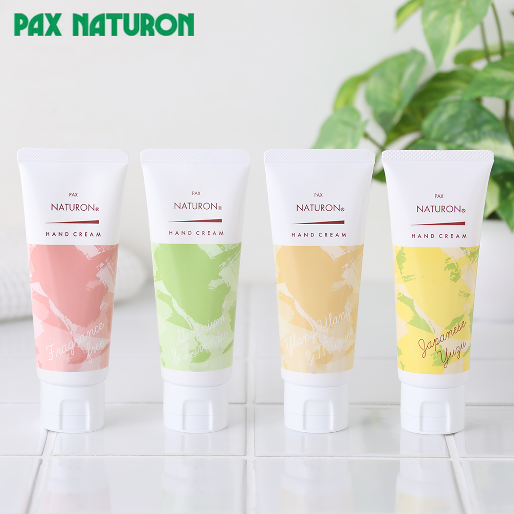パックスナチュロン ハンドクリーム 70g 無香料 / ゼラニウム&ラベンダー / イランイラン&ミュゲ / 柚子  ベタつかず自然な手肌に。 天然成分生まれのナチュラルクリーム。 日々の水仕事や家事で、手肌の乾燥や荒れが気になる方へ。 自然なつけ心地で人気があるハンドクリームのプチギフトにもオススメな70gタイプです。