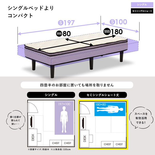 通常のシングルサイズより一回り小さいサイズ。