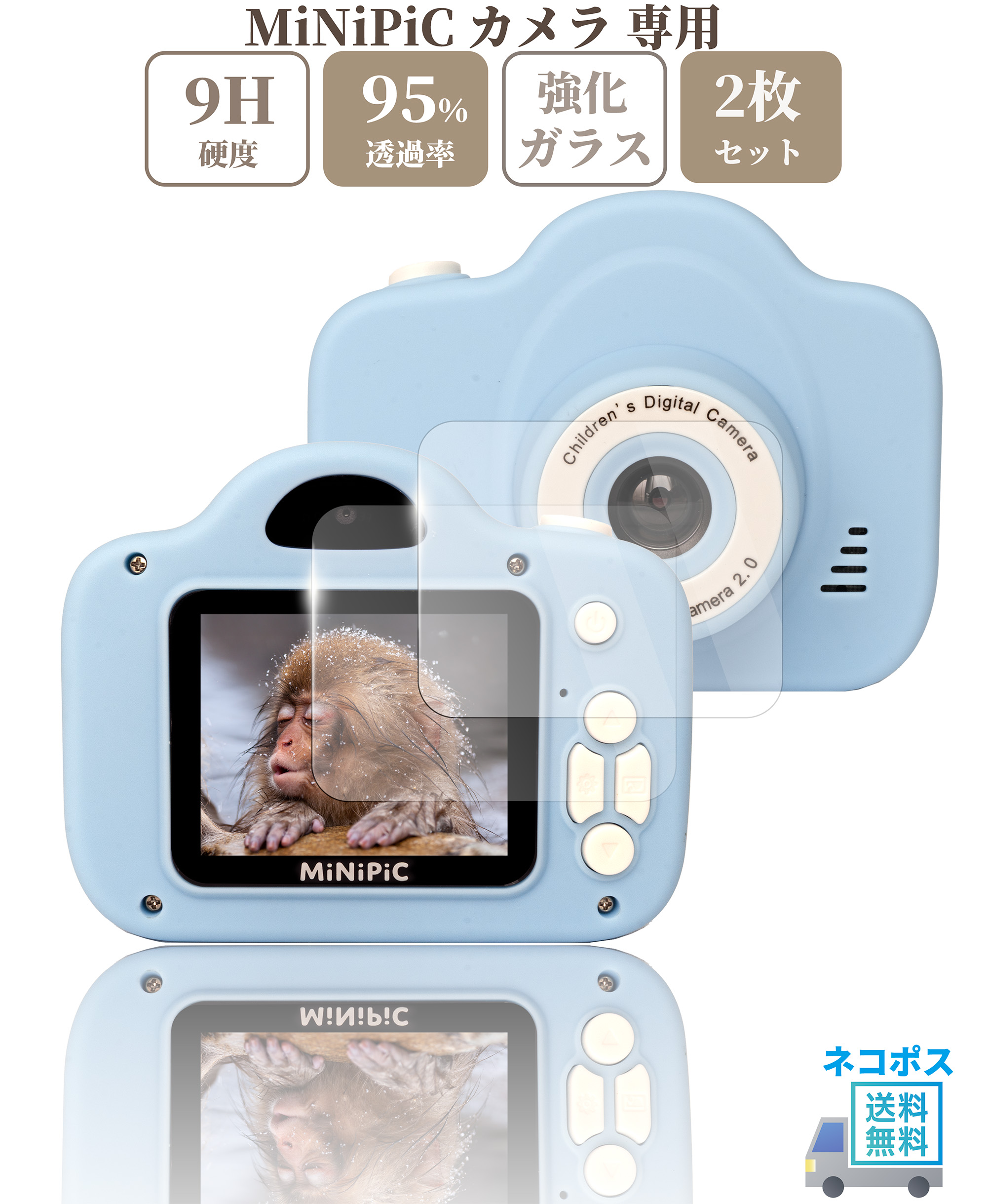 MiNiPiC 専用 ミニピク ガラスフィルム 液晶 保護 硬度9H 【2枚】セット