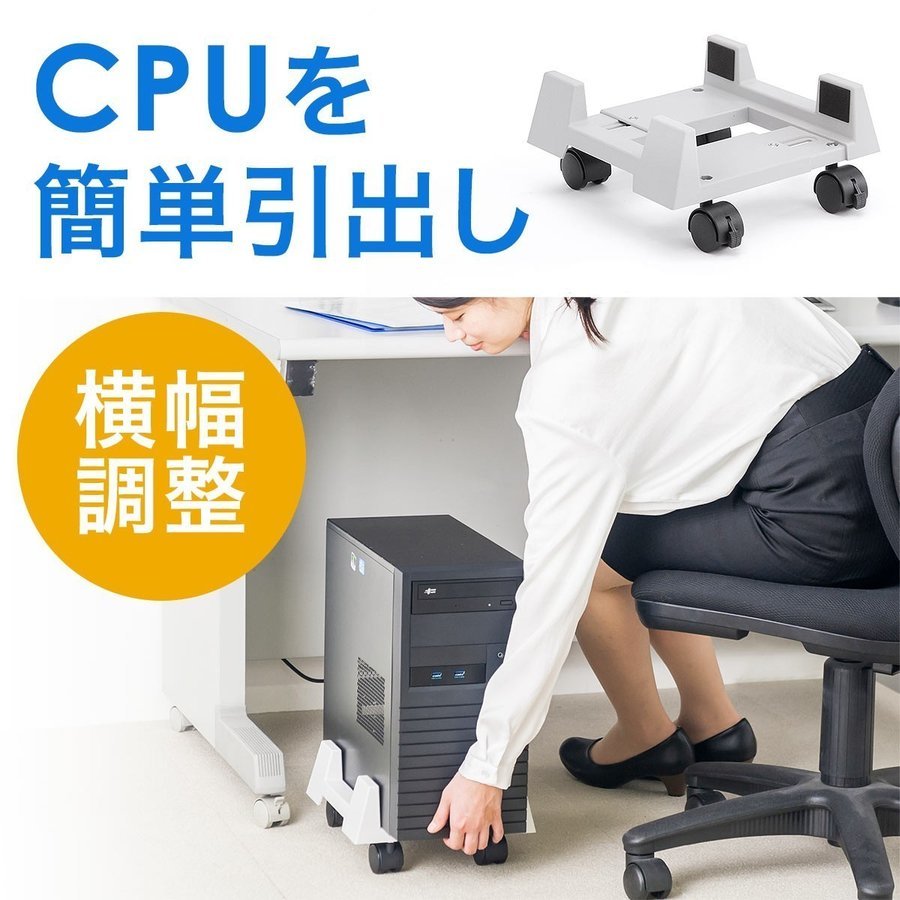 合計5,000円以上お買い上げで送料無料(一部商品・地域除く)! 横幅15.5cmから26cmまで対応したCPUスタンド。サイズに合わせて無段階で調整可能。キャスター付きで容易に移動可能。CPUの落下防止のスポンジシート付き。【WEB限定商品】